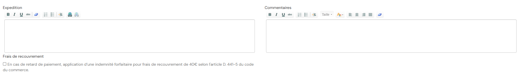 Le champ texte Expédition vous permet d'ajouter toute information que vous jugerez nécessaire à ce sujet concernant votre Bon de livraison. Par exemple, il peut s'agir du nom du transporteur ou encore du numéro du colis.
