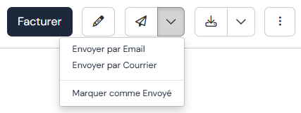Envoyer par email (pour cela, un contact avec une adresse email doit être indiqué sur votre document en plus de votre client) : cliquez sur l'avion en papier en haut à droite