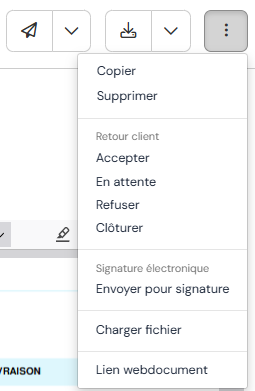 Envoyer pour signature : cliquez sur les 3 points verticaux en haut à droite > section Signature électronique > Envoyer pour signature